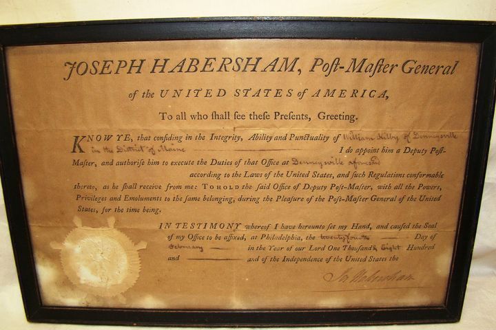 The mail originally came to the community once a fortnight, usually being brought in the carrier's coat pocket. With improved transportation came more frequent mail deliveries. The coming of the Washington County Railroad in 1898 made two deliveries a day possible, coming from the east and from the west. The post office was frequently located in homes and stores, requiring both a Postmaster and rural carrier, who covered a 46 mile route daily, delivering mail to over 900 patrons. The current Post Office is located in a building that had at one time been the location of Walt Dodge's store. The building was first occupied by the post office in 1968, and was extensively remodeled in 1974, completely changing the appearance of the interior and exterior. The one old fashioned feature in this modern, well-equipped post office, is the small bell which jingles whenever the door is opened.Collection