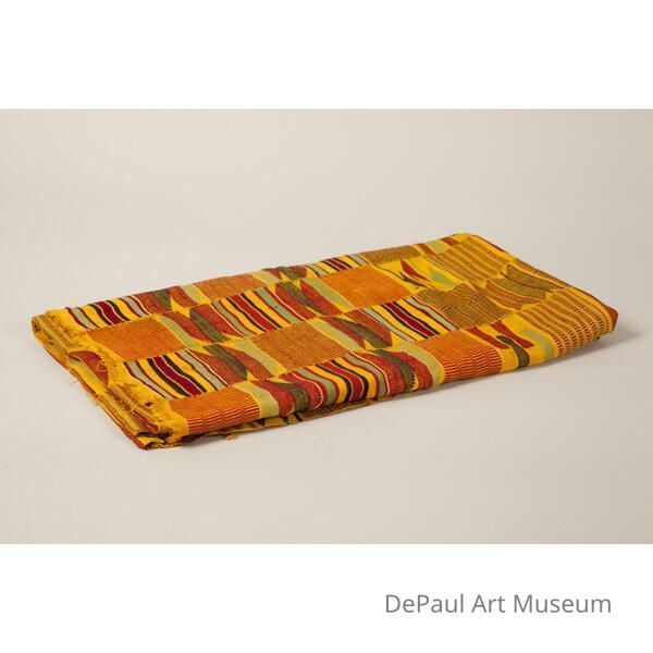 Reds, greens, yellows, and black in woven cloth.Acquisition