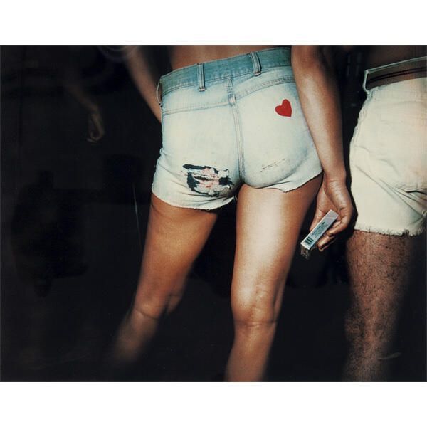 Close-up of a woman's lower body wearing cut-off jean shorts, holding a pack of cigarettes.Acquisition