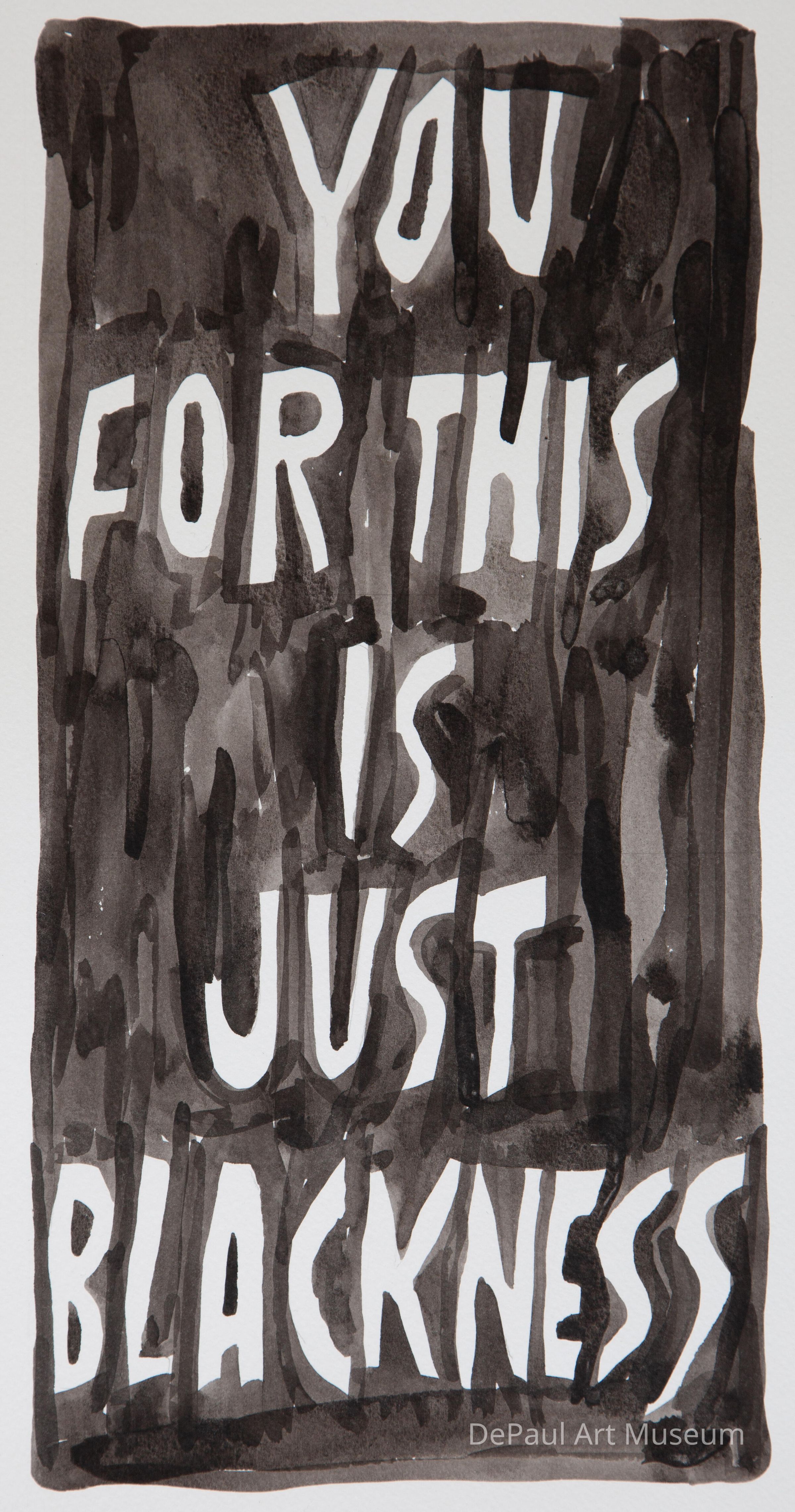 Black ink wash painting forming letters that read "You For This Is Just Blackness"Context