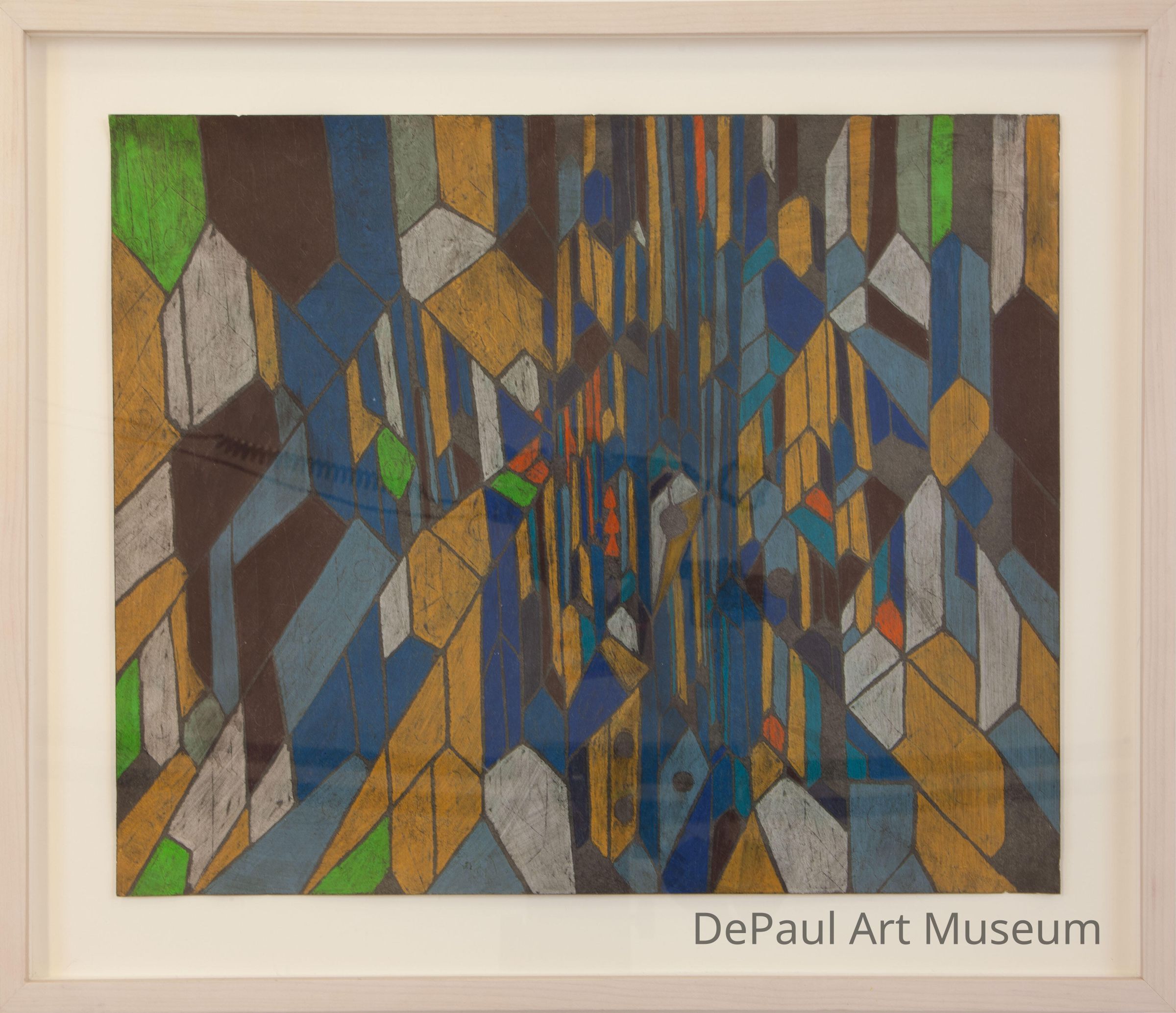 Untitled belongs to a series of drawings and sculptures created by O’Brien leading up to his major exhibition of sculpture at the Renaissance Society in 2011 curated by Hamza Walker and his solo exhibition at the MCA in 2014 curated by Naomi Beckwith. For O’Brien, drawing is not merely a preparatory or preliminary practice, but an economical and expedient way to produce work in contrast to the more labor-intensive ceramic sculptures. This work is notably more muted in terms of its use of color, but nonetheless is exemplary of O’Brien’s use of abstraction and repetition. The simple yet dense geometrical shapes create an almost architectural effect reminiscent of stained glass.Acquisition