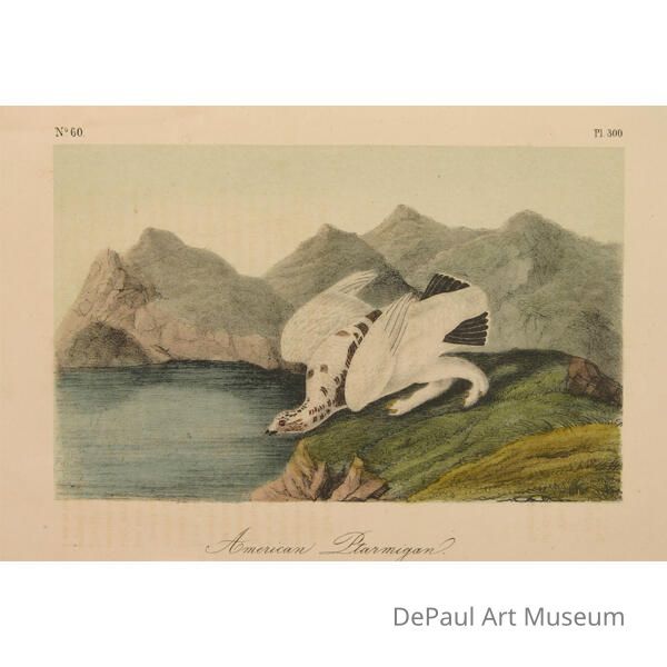 John J. Audubon’s (1785-1851) book ‘Birds of America’ was originally printed with “Double Elephant folio” engravings, meaning 435 life size images of North American birds. Between 1840 and 1869, several editions of a smaller (“octavo”) version of the book were printed. The prints found in DePaul’s collection are from this later era, and were printed by J.T. Bowen in Philadelphia. Bowen used a “camera lucida” to project the large engravings on lithographic stone which was then hand drawn and hand painted using watercolors. These smaller sized books made Audubon’s work accessible to a wider audience, and helped his art gain the reputation it still holds today.Acquisition