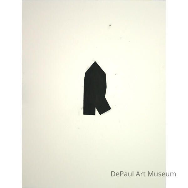 Black geometric abstract shape centered in an expanse of negative space.Artwork Details