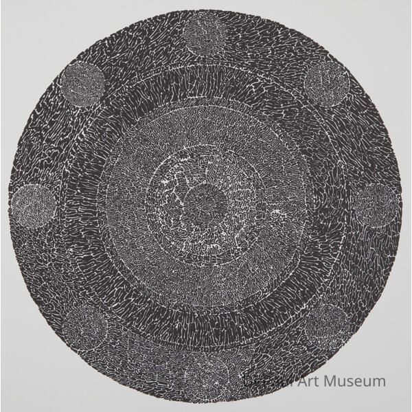 Black and whtie large circle containing smaller circles.Artwork Details
