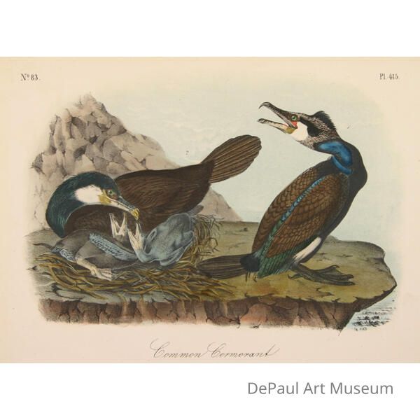John J. Audubon’s (1785-1851) book ‘Birds of America’ was originally printed with “Double Elephant folio” engravings, meaning 435 life size images of North American birds. Between 1840 and 1869, several editions of a smaller (“octavo”) version of the book were printed. The prints found in DePaul’s collection are from this later era, and were printed by J.T. Bowen in Philadelphia. Bowen used a “camera lucida” to project the large engravings on lithographic stone which was then hand drawn and hand painted using watercolors. These smaller sized books made Audubon’s work accessible to a wider audience, and helped his art gain the reputation it still holds today.Acquisition
