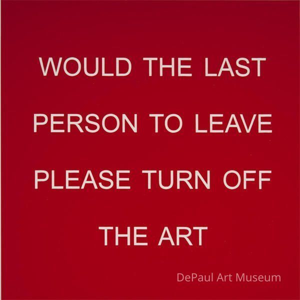 "Would the last person to leave please turn off the art" Red plaque and white light switch.