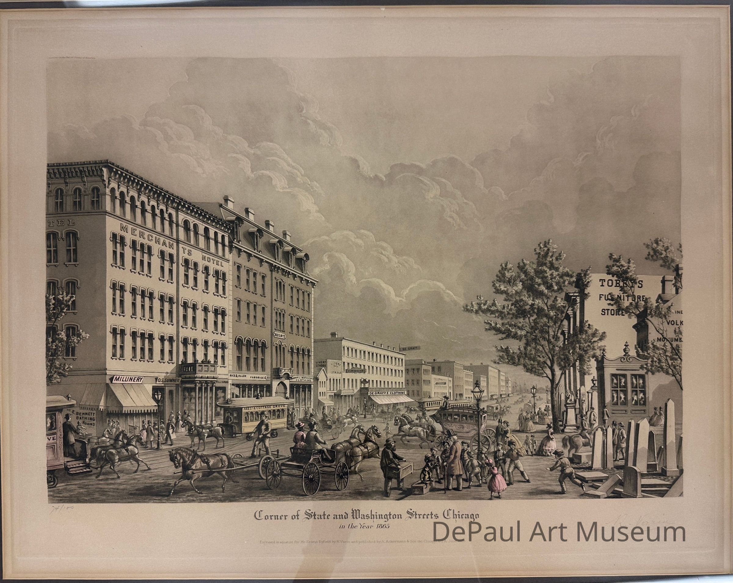 This print is a typical work of Raoul Varin (1865-1943). Though originally from France, Varin was best known for his aquatint etchings depicting realistic views of outdoor Chicago. Often titled using simply the street corner or building shown, these scenes are set mainly in the mid 1800’s (pre-fire) and were created in the 1920’s - 30’s.Acquisition