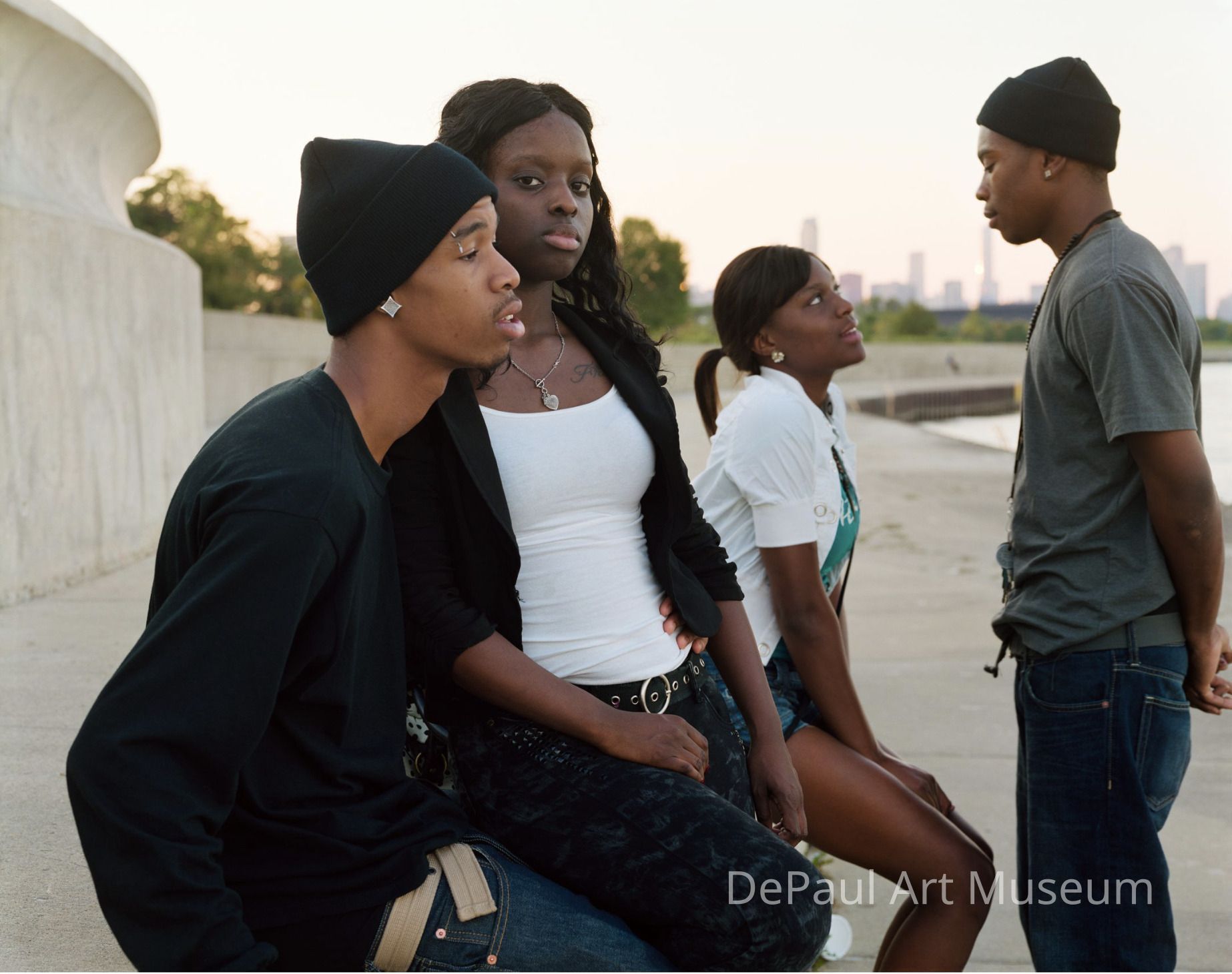 Couples by the Lake D'Amato, Paul 2011 Four African-American teenagers sitting near body of water in front of Chicago skyline.