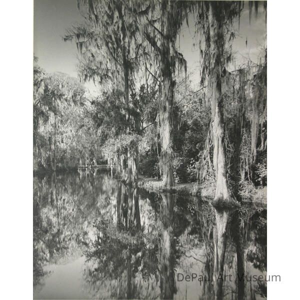 Venerable and mysterious, the cypress tress and their wierd reflections in Charleston's Magnolia Gardens. Gottscho-Schleisner #56647Material/Technique