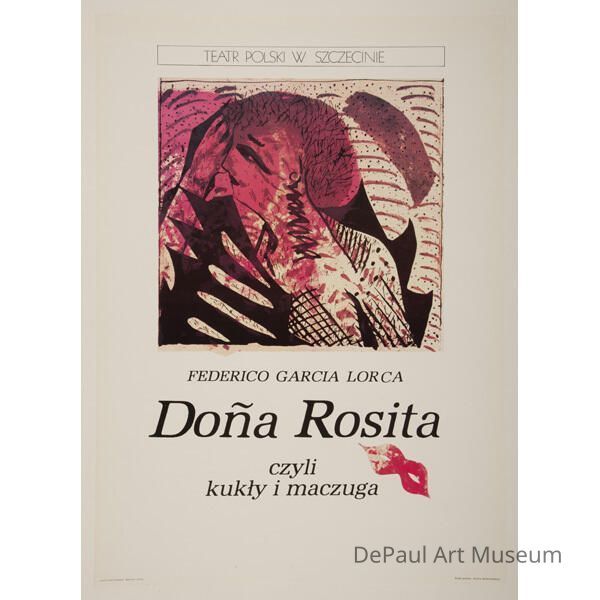 Theater poster (Lorca play) with a red abstracted woman and text at the bottom.Acquisition