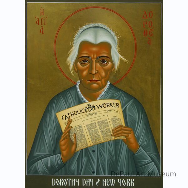 Dorothy Day holding a catholic workers newspaper.Artwork Details