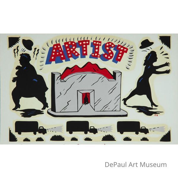 Chicago Imagist, typefaces (type forms), information form components, components (objects parts), decals, visual works (works)Hierarchy Name