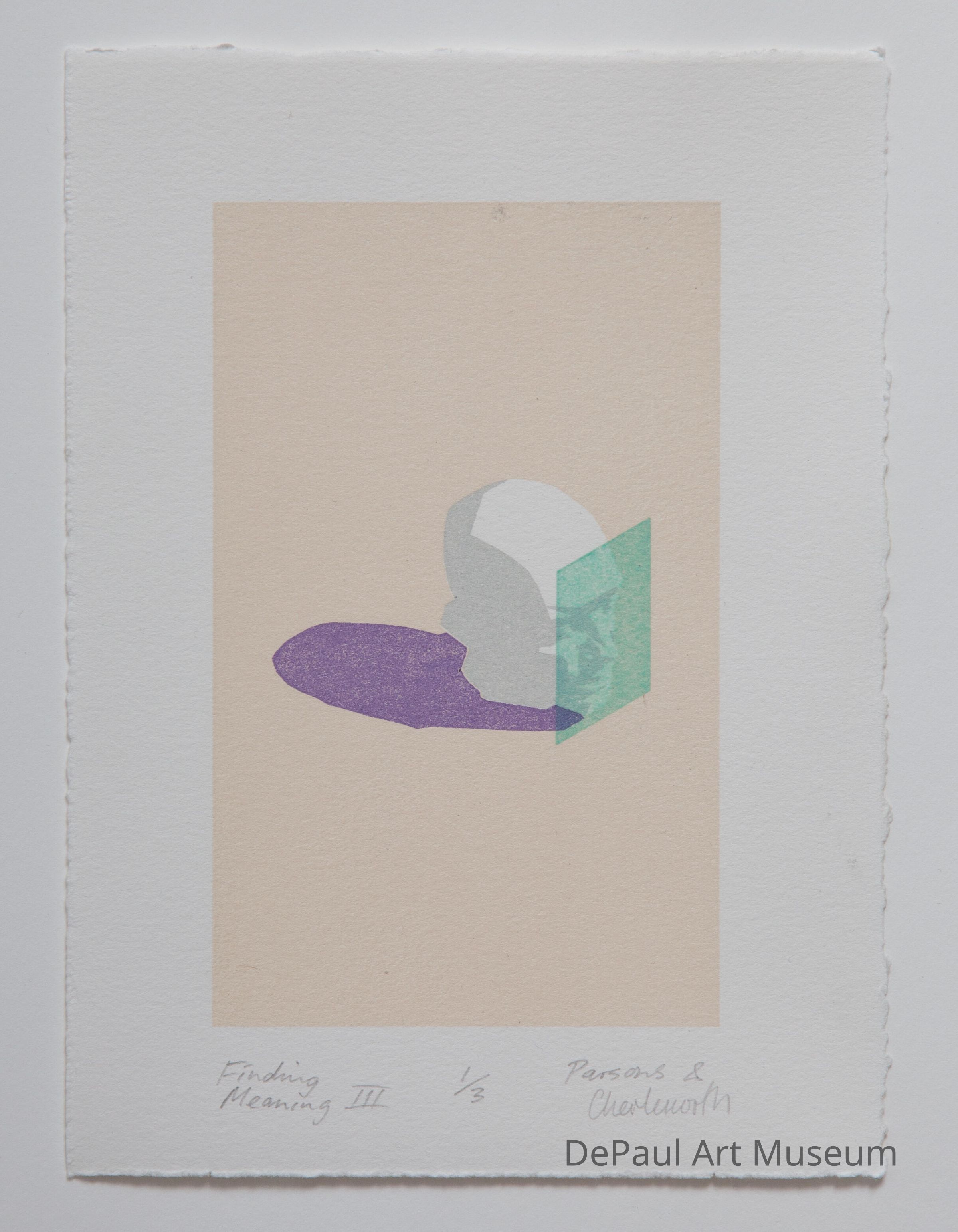 Finding Meaning is a boxed set of five lithographs, commissioned and printed by Fernwey Editions. Following the release of the Golden Section Finder, Finding Meaning continued our meditation upon the application of the Golden ratio/section/mean by highlighting five ways in which it is interpreted and applied. Each lithograph contains a golden section rectangle superimposed over a symbol denoting a reading of the ratio. These are; its application in architecture (Le Corbusier’s Villa Stein), its use by Creationists (the cross), its use in determining human facial beauty (the human head), its appearance in nature (the shell) its use by conspiracy theorists (the Eye of Providence). They were offered in three color variants (with yellow, pink or green backgrounds) and made in an edition of three per color variant.Acquisition