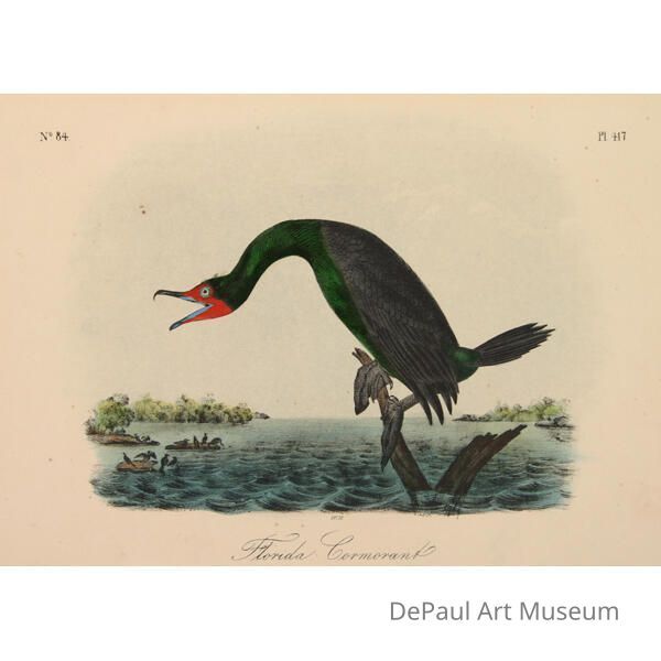John J. Audubon’s (1785-1851) book ‘Birds of America’ was originally printed with “Double Elephant folio” engravings, meaning 435 life size images of North American birds. Between 1840 and 1869, several editions of a smaller (“octavo”) version of the book were printed. The prints found in DePaul’s collection are from this later era, and were printed by J.T. Bowen in Philadelphia. Bowen used a “camera lucida” to project the large engravings on lithographic stone which was then hand drawn and hand painted using watercolors. These smaller sized books made Audubon’s work accessible to a wider audience, and helped his art gain the reputation it still holds today.Acquisition
