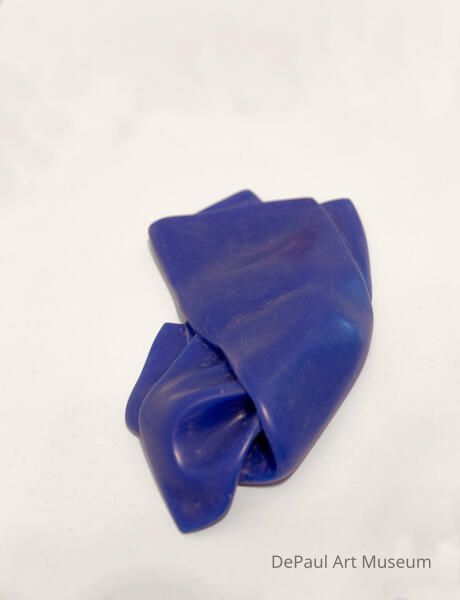 solid royal blue sculpture giving illusion of folded handkerchief on flat surface