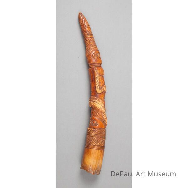 Ifa ivory topper with complex design of two human figures.