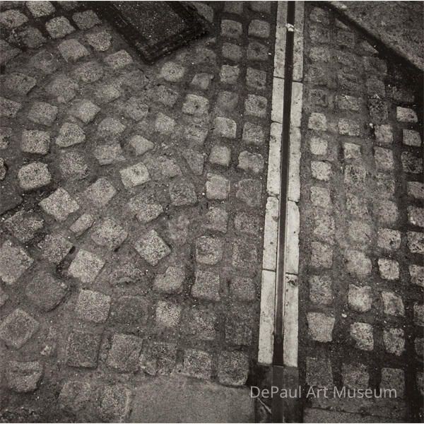 Textural Abstract; B&W; Patterned cobblestones with a vertical line of bricks just right of center of imageAcquisition