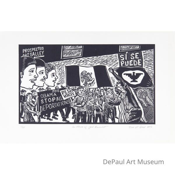 Jose Guerrero (1938–2015) was an artist and community leader who impacted his community through printmaking, mural painting, and activism. Guerrero is best known for his work in the Pilsen neighborhood, where his studio and workshop was a hub for art classes, mural tours, and political organizing.Acquisition