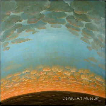 The 1960’s marked the last decade of Julia Thecla’s artistic career and somewhat of a restoration of her place in Chicago’s art world. Thecla thrived in the artistic community of Chicago in the 1930’s and 40’s, but fell to the margins in the 1950’s. She is considered a surrealist painter or a part of the “magic realism” group along with Gertrude Abercrombie and Ivan Albright. While her early work shows more human and animal figures, her later works such as this one, were focused on space. These space themed paintings are thought to have been either a reflection of America’s obsession with the “race for space” at the time, or an escape route for Thecla out of this dimension and into another.Acquisition