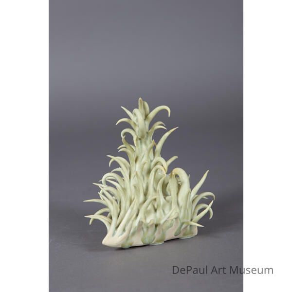 Light green sculpture with spikey tendrils coming out from the center with some curled into themselves.Acquisition