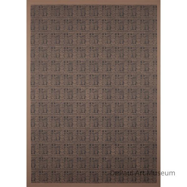 Greek-borne artist Chryssa grew up during WW2, where she first learned the influence of symbols and mass culture. She moved to New York City in 1958 and began creating art inspired by newspapers and advertisements. This painting shows an “Island House” advertisement repeated over and over in a large grid. Chryssa made a series of paintings similar to this, using repetitive patterns of newspaper sections, perhaps to create a sense of the repetition of pulsating city life. Eventually, neon signage became her signature style, another homage to New York City. This shows that her art was focused on finding meaning, beauty, and excitement in something often taken as mundane, like a newspaper or neon sign, seen everyday by millions. She was highly inspired by her surroundings, and in her own words she claimed; “America is very stimulating, intoxicating for me…” These words are echoed even in a painting such as this, where seemingly every day subject matter becomes grand and hypnotizing on a sprawling canvas.Acquisition