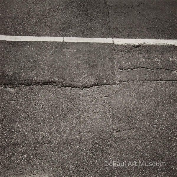 Textural Abstract; B&W; intersection of patrched concrete with single white road line in upper third of imageAcquisition