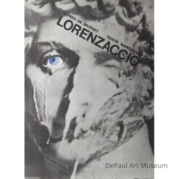 Created in the late 1970s, this work was an advertisement for Alfred de Musset's Lorenzaccio, a French play of the Romantic period written in 1834 and set in 16th-century Florence. It was run and produced by the "Teatr Narodowy," the National Theatre in Warsaw, Poland. This work had two creators: Mroszczak and Krauze. Mroszczak, the poster's primary artist, was a Polish graphic designer born in 1910.