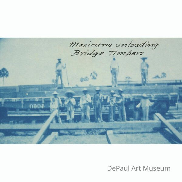 Mexicans unloading Bridge TimbersDimensions