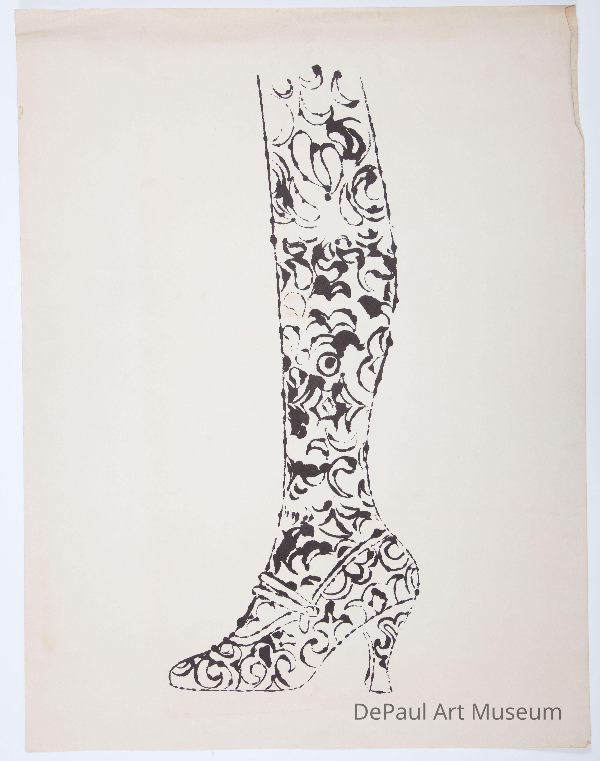 The collection of works here date from the early to mid 1950s, the period when Warhol was primarily producing illustrations for the shoe manufacturer Israel Miller. Warhol’s colorful designs depict shoes and boots adorned with gold leaf, embossed foil, and decorative cut outs. Beneath each design is scrawled a pithy phrase or aphorism such as à la recerche du shoe perdue, a reference to Marcel Proust’s magnum opus A la recherche du temps perdu. Other works in this collection depict the chic and fashionable city dwellers Warhol would have seen on the streets and at parties upon first moving to New York. Also included are two early artist’s books. A Is an Alphabet is one of the earliest of such works and features verses penned by Warhol’s friend Corkie (Ralph Thomas Ward). The illustrations are based on tracings Warhol made from photographs in magazines. Love is a Pink Cake, also a collaboration with Corkie, is comprised of 25 sheets, each depicting famous lovers and couples and stands out as an early work where Warhol is forthcoming about his own sexuality.Acquisition