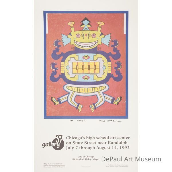 Chicago Imagist, posters, information artifacts, information forms (objects), anthropomorphic, figure-derived form attributes, form attributes, zoomorphic, geometric patterns, patterns (design elements), design elements (attributes), fantasies (visual works), visual works (works), repetition (artistic concept), formal concepts (artistic concept), artistic conceptsHierarchy Name