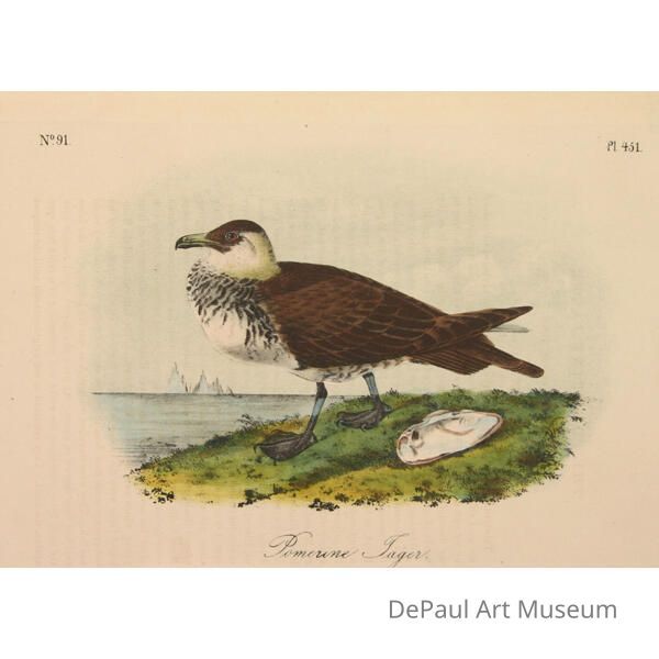 John J. Audubon’s (1785-1851) book ‘Birds of America’ was originally printed with “Double Elephant folio” engravings, meaning 435 life size images of North American birds. Between 1840 and 1869, several editions of a smaller (“octavo”) version of the book were printed. The prints found in DePaul’s collection are from this later era, and were printed by J.T. Bowen in Philadelphia. Bowen used a “camera lucida” to project the large engravings on lithographic stone which was then hand drawn and hand painted using watercolors. These smaller sized books made Audubon’s work accessible to a wider audience, and helped his art gain the reputation it still holds today.Acquisition
