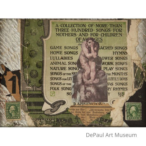collage, found materials, papers