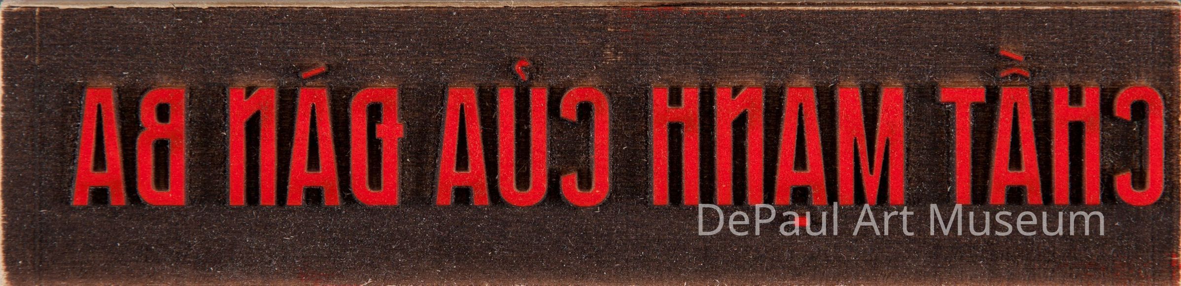 A stamp that reads 'CHÂT MANH CUA DÀN BA' in red letters on a dark brown background.