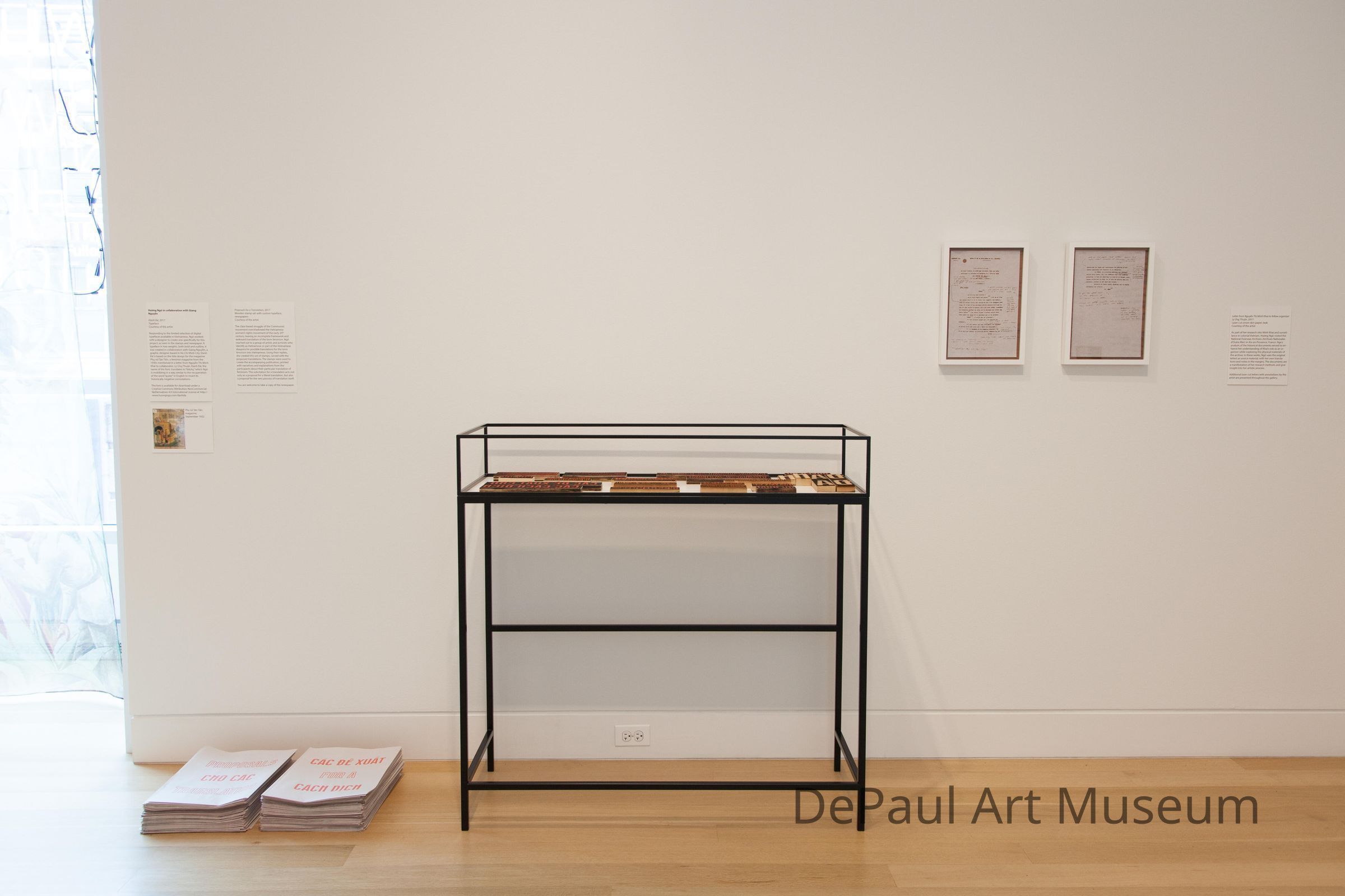 The class-based struggle of the Communist movement overshadowed the Vietnamese women’s rights movement of the early 20th century, leaving an incomplete framework and awkward translation of the term feminism. Ngô reached out to a group of artists and activists who identify as Vietnamese or part of the Vietnamese diaspora for possible translations for the term feminism into Vietnamese. Using their replies, she created this set of stamps, carved with the proposed translations. The stamps were used to create the accompanying publication, printed with narratives and explanations from the participants about their particular translation of feminism. This solicitation for a translation acts not only as a proposal for a literal translation, but also a proposal for the very process of translation itself.