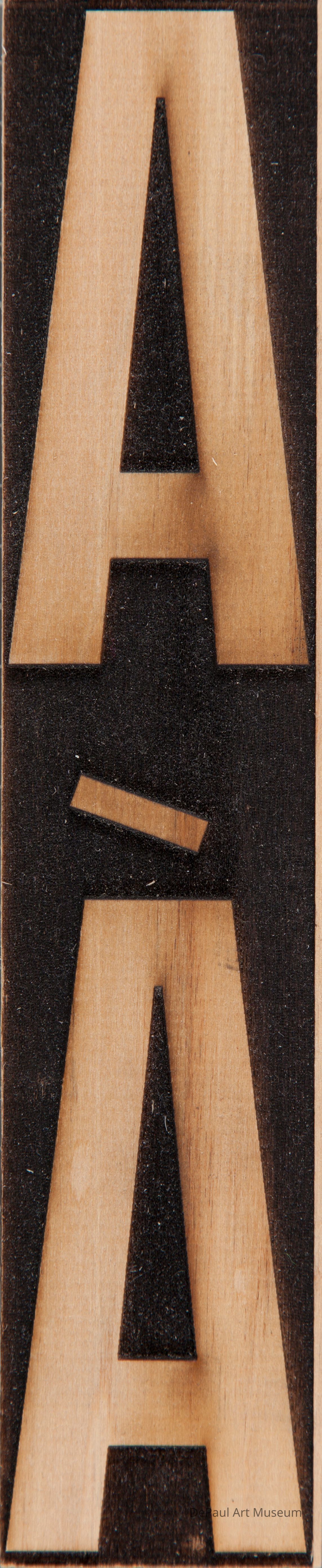 A stamp with two large A's stacked on top of each other on a dark brown background.