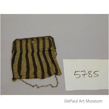 Gold and black striped purse with thin chain handle.Acquisition