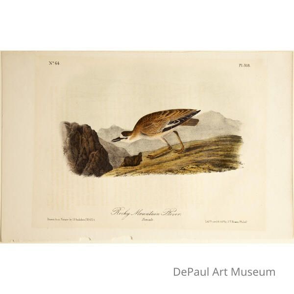 John J. Audubon’s (1785-1851) book ‘Birds of America’ was originally printed with “Double Elephant folio” engravings, meaning 435 life size images of North American birds. Between 1840 and 1869, several editions of a smaller (“octavo”) version of the book were printed. The prints found in DePaul’s collection are from this later era, and were printed by J.T. Bowen in Philadelphia. Bowen used a “camera lucida” to project the large engravings on lithographic stone which was then hand drawn and hand painted using watercolors. These smaller sized books made Audubon’s work accessible to a wider audience, and helped his art gain the reputation it still holds today.Acquisition