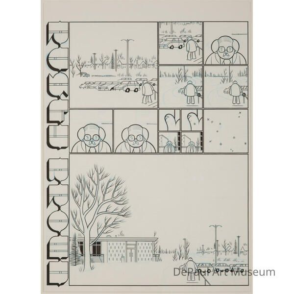 Comic illustration of an old man and snowflakes. Some text throughout.Artwork Details
