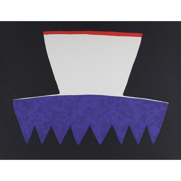 Abormal shape (red, white, a blue) with spiked bottom against black background