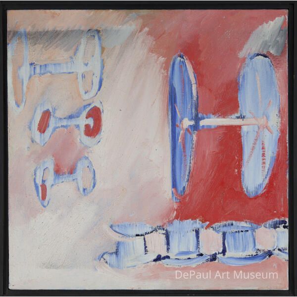 "Richard Feigen Gallery/ 53 E. Division St. Chicago IL 60610/George Kokines/Space Wheels/Oil on canvas/14x14Notes