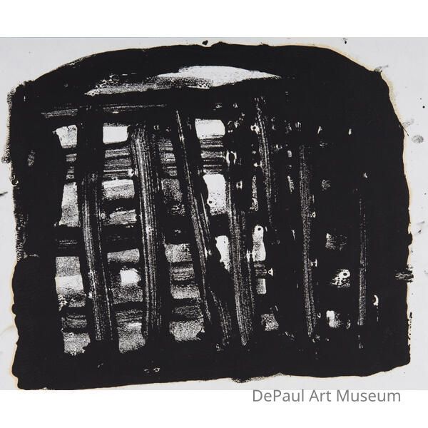Dark black rectangle with square patches of white in vertical rows.Artwork Details
