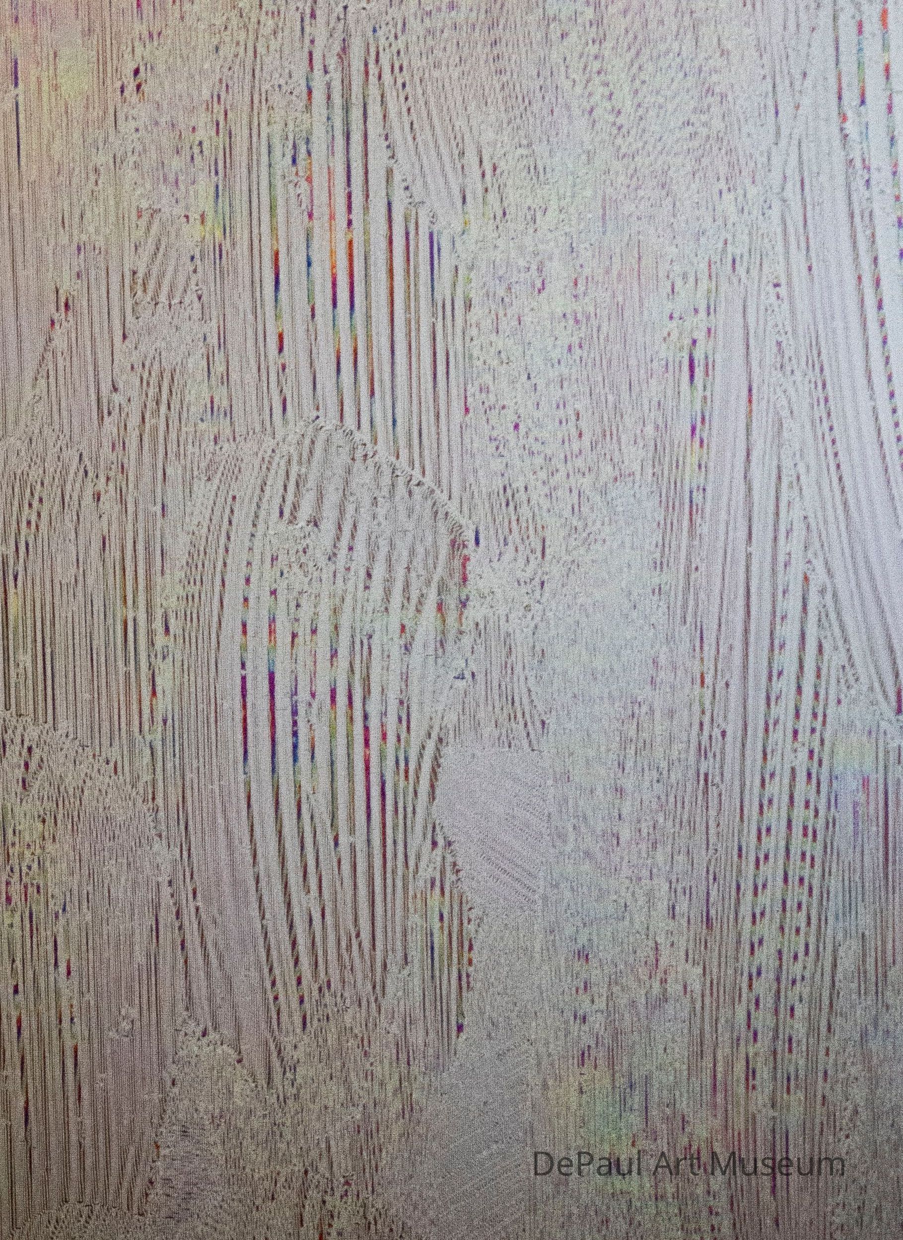 Streaks in various directions on a grey backgrounds. Some streaks are colorful in their lines. This effect was created by the artist capturing his finger dragging across a digital surface.Context