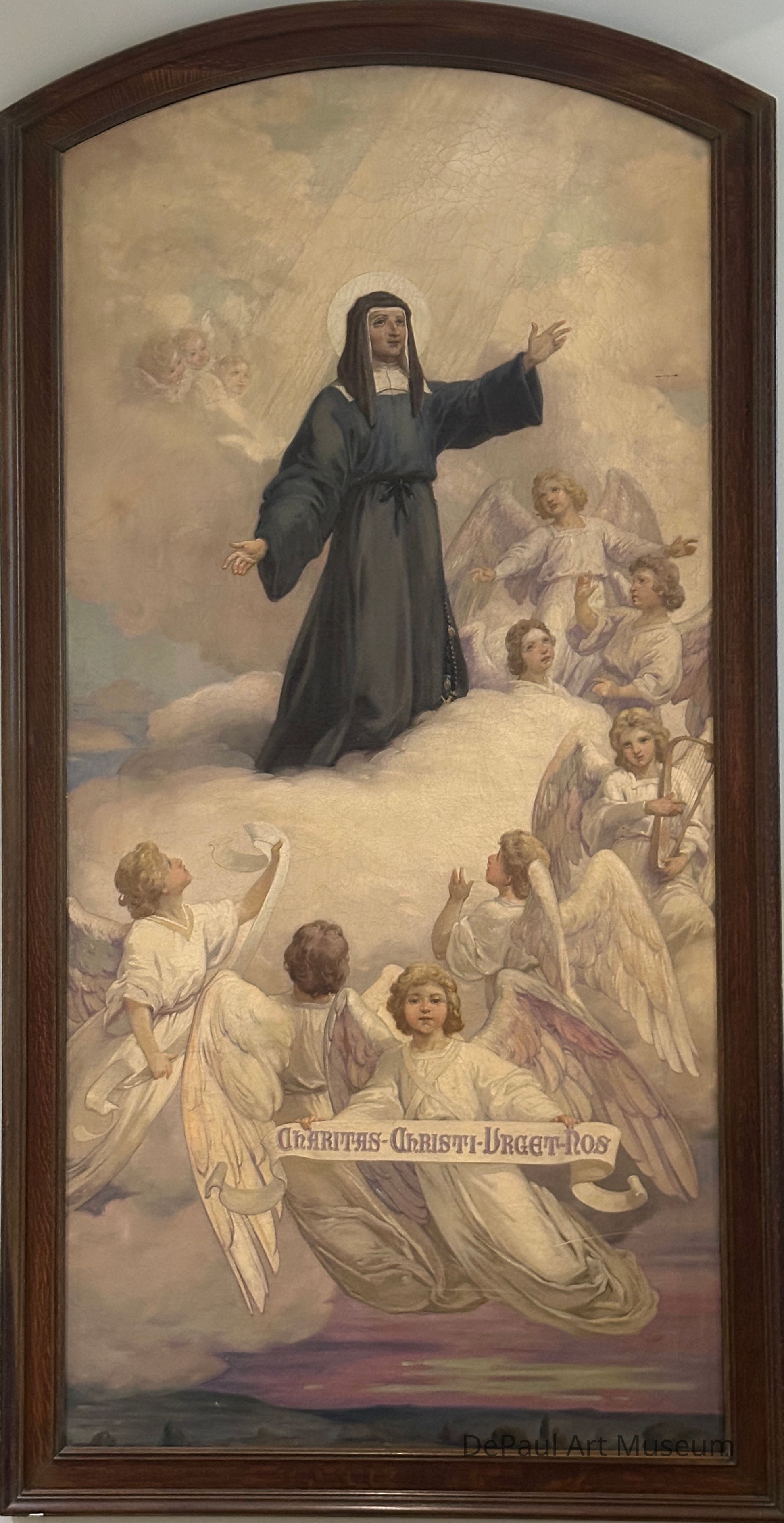 This painting portrays the Apothesis, or heavinly glorification, of Louise de Marillac, a long collaborator, and friend of St. Vincent DePaul. They co-founded the Company of the Daughters of Charity (1633). Louise de Marillac was a pioneer in expanding the role of women in the Roman Catholic Church, as well as establishing the basis for modern social work. Louise was canonized on March 11, 1934. Pope John XXIII proclaimed her the patron saint of all Christian social workers in 1960. This painting hung in St. Peter's Basilica in Rome during her beatification ceremony on May 9, 1920Acquisition