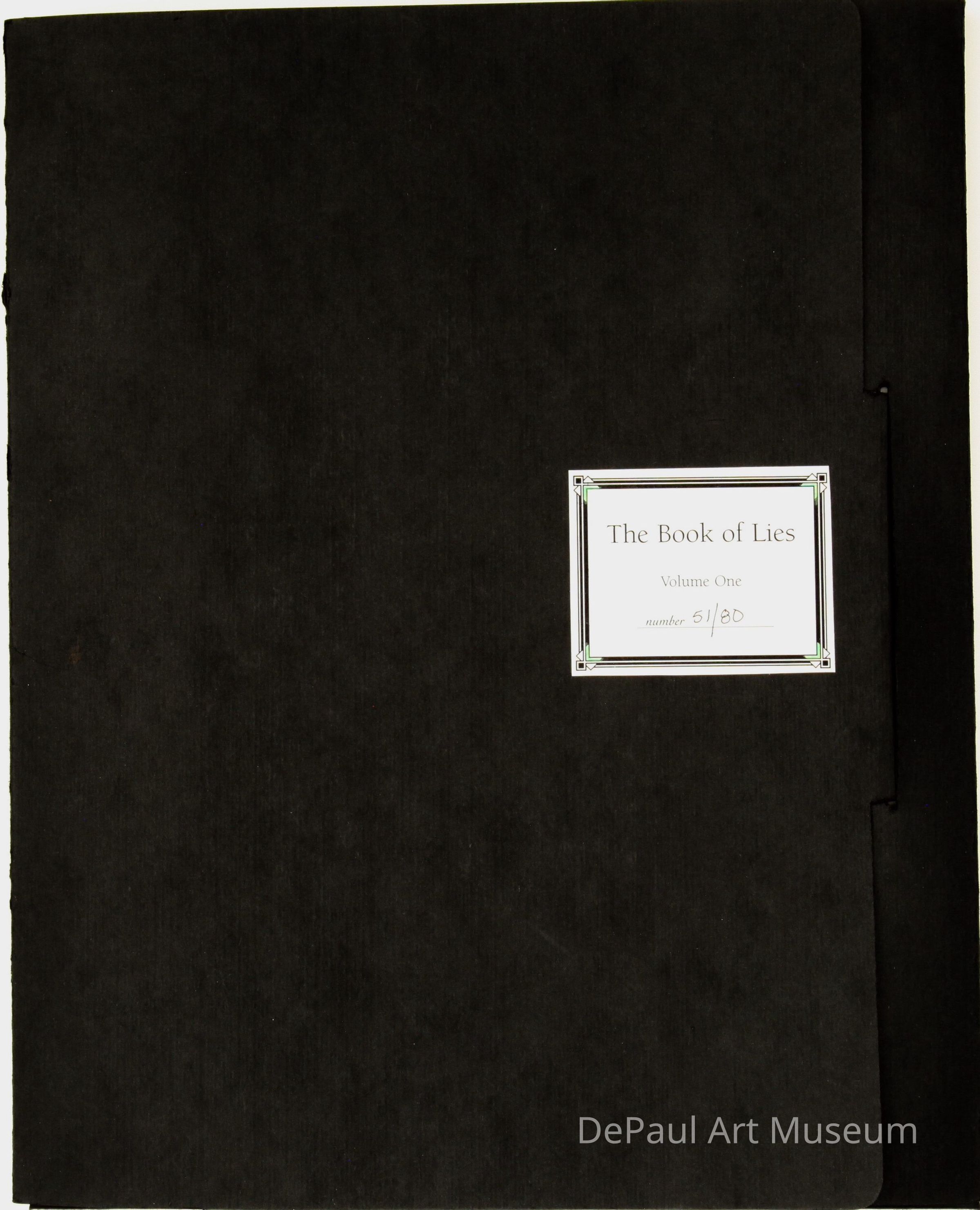 From the 1960s until her death, conceptual artist Eugenia P. Butler collaborated with other artists on this three-volume book set that considered two questions: "1. What is the lie with which you are most complicit? and 2. What is the truth that most feeds my life?" Volume 1 of this series considered lies in love. The artworks are made by each individual artist by the materials and methods that they most often use. Butler considered this series to be a dialogue though the visual and the poetic from artists around the world.Acquisition