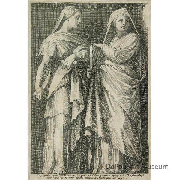 Due Sybille Rome extra Portam S. Angeli, a Polidoro quondam depicte et lucide et sumbose nunc recens ab (illeg.) ibidem et Chalographa arte sculpte
