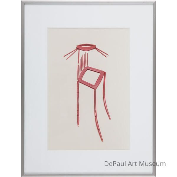 Dark redish brown chair pieces assembled like a chair but flattened out into a 2D shape. Series of 9 prints.Acquisition