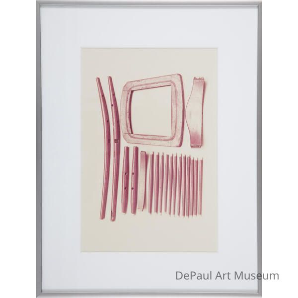 Brownish-red chair pieces lined up next to each other. Series of 9.Acquisition