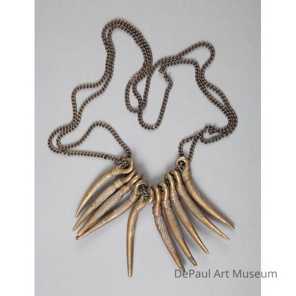 Bronze chain necklace with horn-like pendants on loops.Acquisition