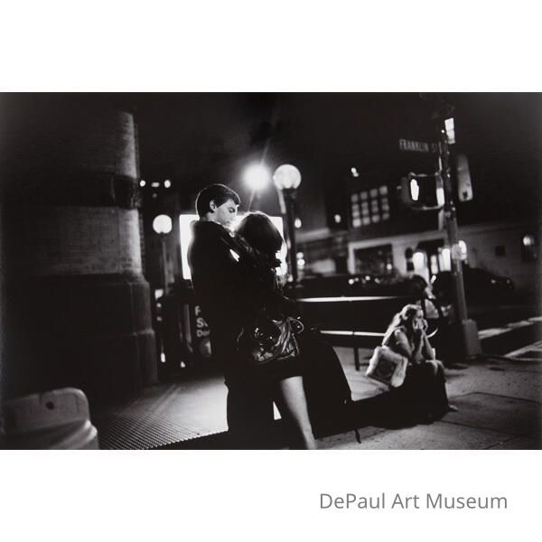 A man and a woman embracing on a city street at night under a streetlightAcquisition