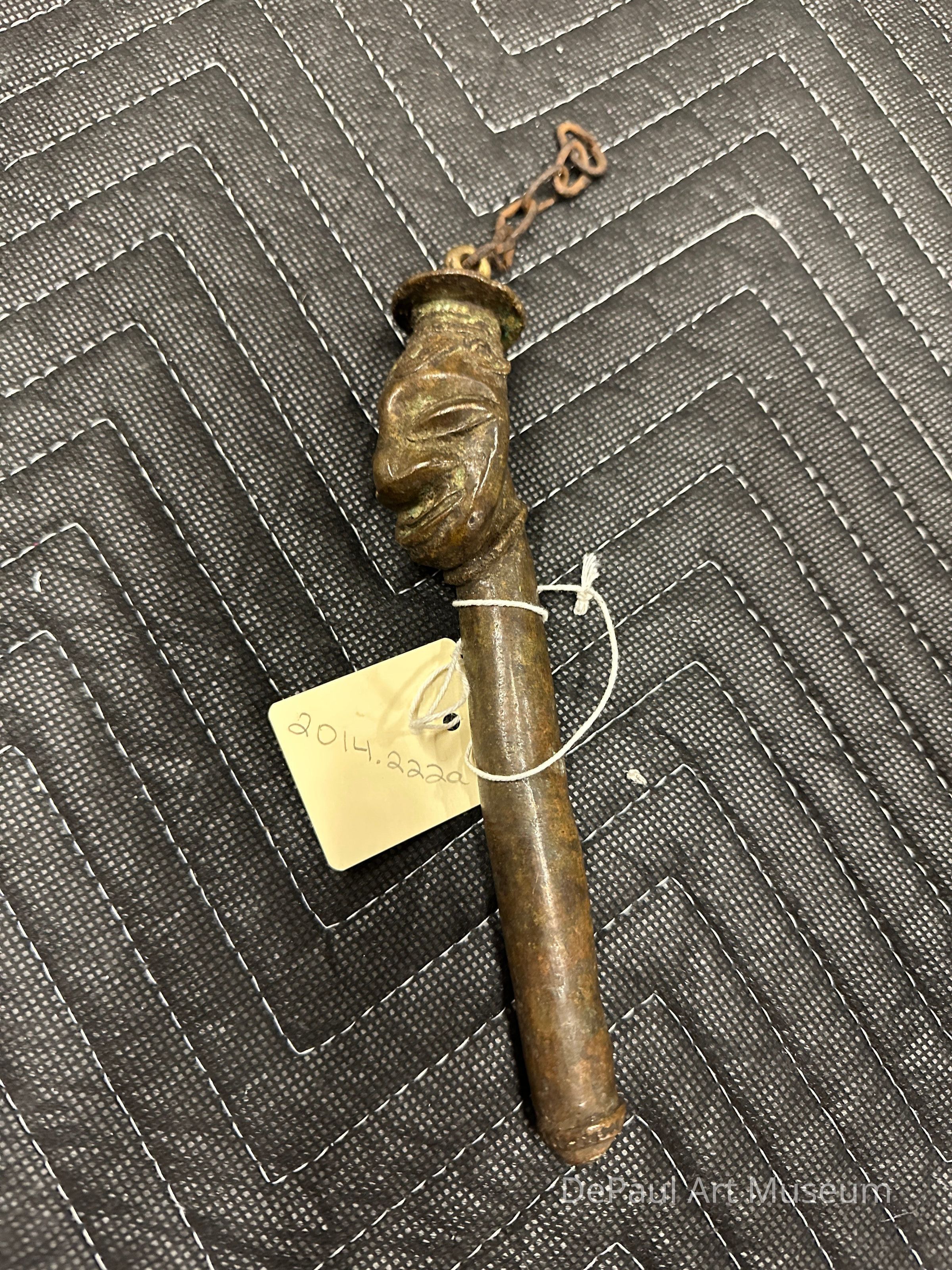Edan figure head with hat on cylindrical pole.Acquisition